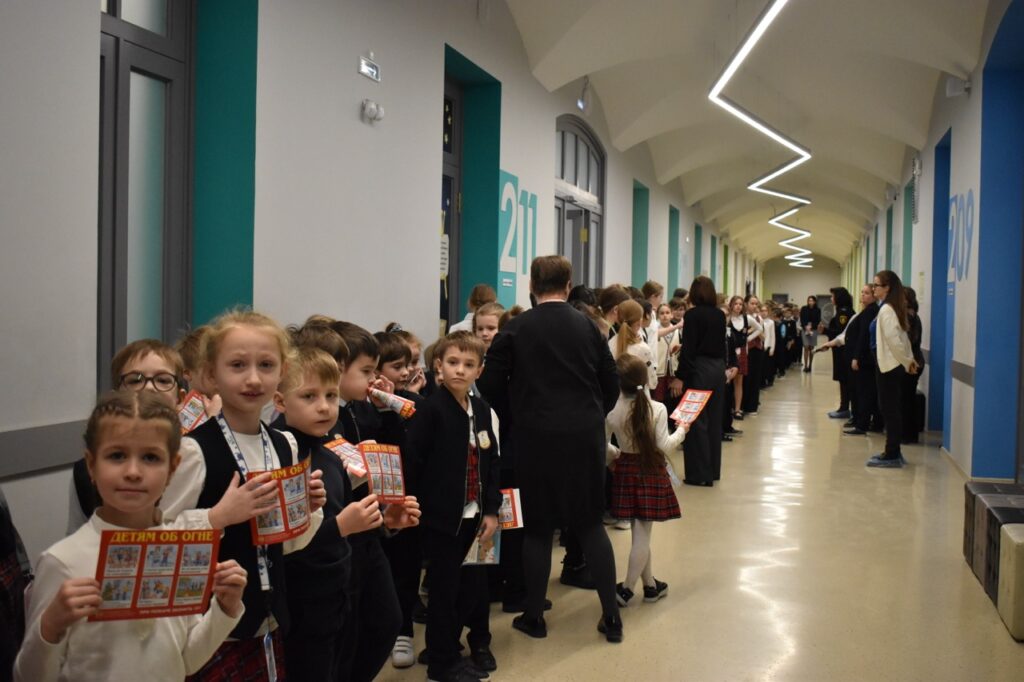 25 февраля после проведения беседы с учащимися специалисты сотрудники Центрального отделения СПб ГО ВДПО Игнашкова К. А. и СПб ГКУ ПСО Центрального района Александрова И. В. провели тренировочное занятие по эвакуации для учащихся всей начальной школы ГБОУ Лицея №211 имени Пьера де Кубертена.