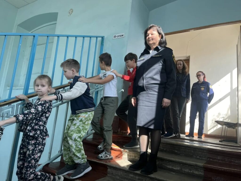 В завершении мероприятия была проведена тренировочная эвакуация из класса. Учащиеся быстро и правильно построились и следуя за педагогом спустились на 1-й этаж учебного заведения.