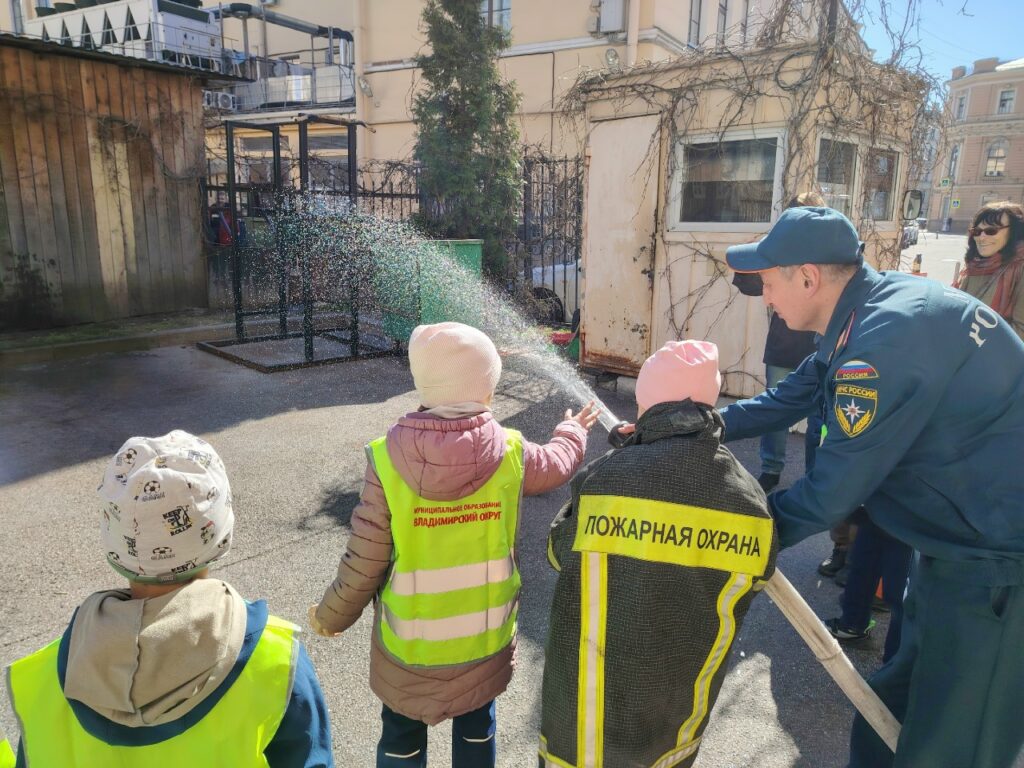 Самым запоминающимся был пуск воды из рукава! Все дети попробовали себя в роли пожарных, все остались довольны.
